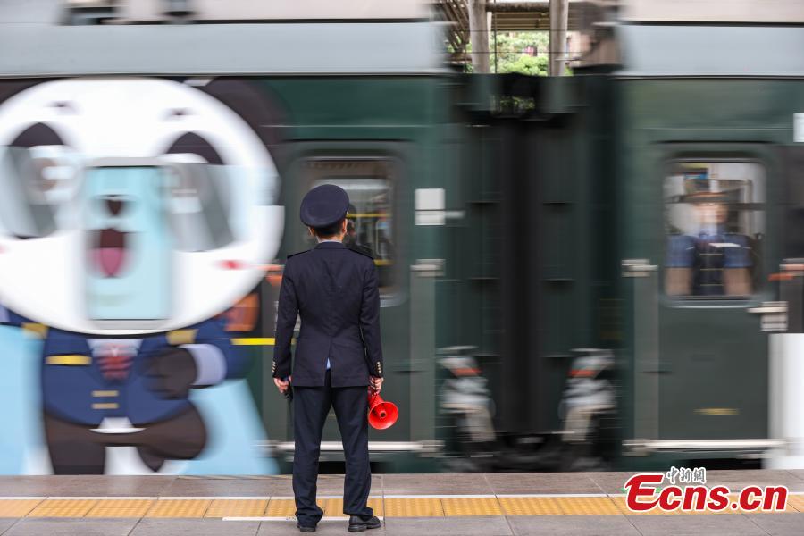 O trem, decorado com imagens, pinturas e mascotes de pandas gigantes e denominado "Trem Panda", que opera ao longo das cidades de Guiyang e Xishuangbanna, no sudoeste da China, e de Vientiane, Vang Vieng e Luang Prabang, no Laos, partiu de Guiyang na quarta-feira (8).