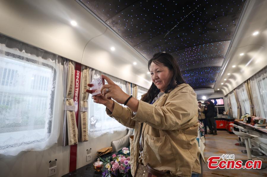 O trem, decorado com imagens, pinturas e mascotes de pandas gigantes e denominado "Trem Panda", que opera ao longo das cidades de Guiyang e Xishuangbanna, no sudoeste da China, e de Vientiane, Vang Vieng e Luang Prabang, no Laos, partiu de Guiyang na quarta-feira (8).