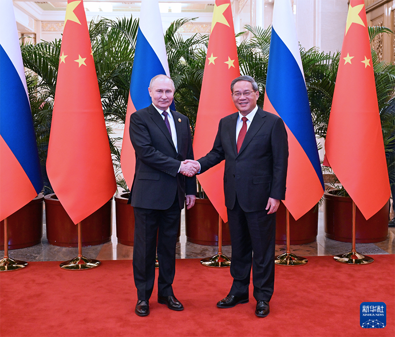 O primeiro-ministro chinês, Li Qiang, reuniu-se na quinta-feira com o presidente russo, Vladimir Putin, que está na China em visita de Estado, no Grande Palácio do Povo, em Beijing.