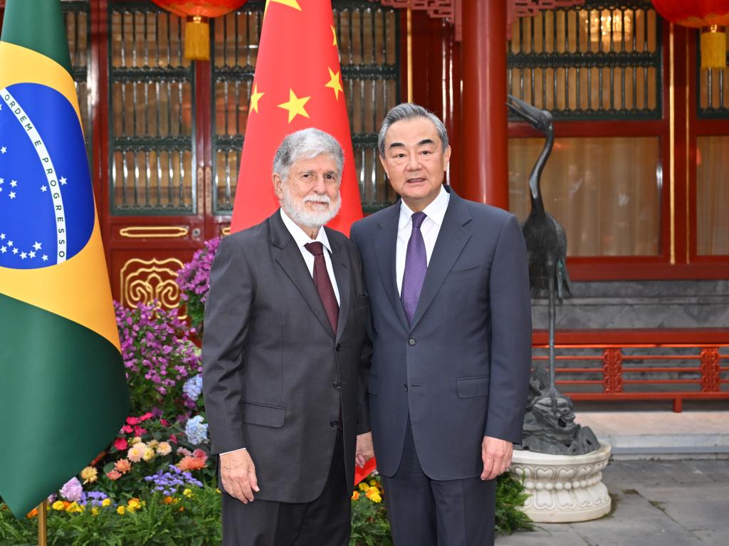 Observando que este ano é assinalado o 50o aniversário dos la?os diplomáticos China-Brasil, Wang disse que a China está disponível para manter intercambios de alto nível com o Brasil, fortalecer a coordena??o estratégica e melhorar o posicionamento das rela??es bilaterais entre os dois países.