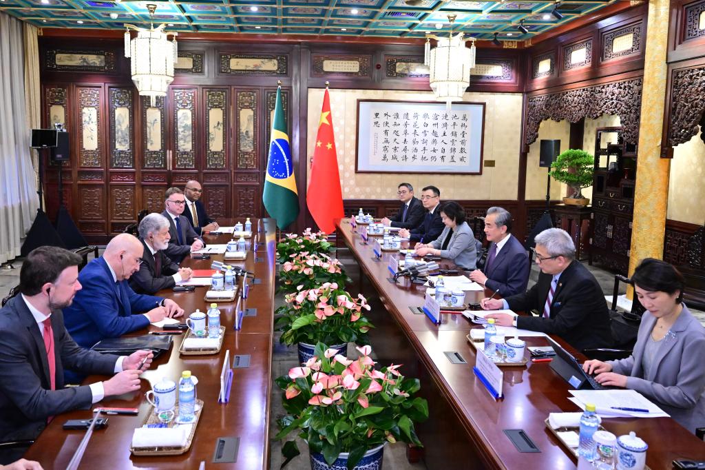 Wang Yi, membro do Bir? Político do Comitê Central do Partido Comunista da China (PCCh) e diretor do Escritório da Comiss?o de Rela??es Exteriores do Comitê Central do PCCh, esteve reunido com Celso Amorim, assessor especial do presidente do Brasil, em Beijing, na quinta-feira (23).