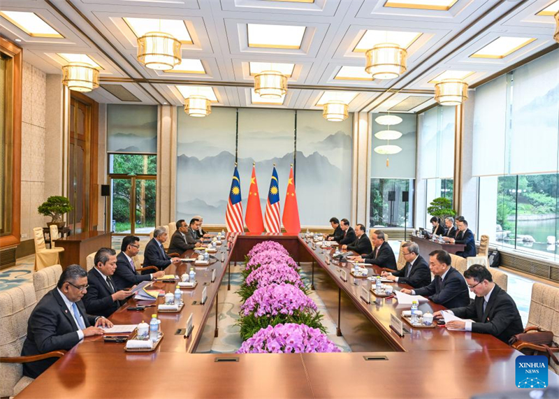 O primeiro-ministro chinês, Li Qiang, reuniu-se com o primeiro vice-premiê da Malásia e ministro do Desenvolvimento Rural e Regional, Dato' Seri Dr. Ahmad Zahid bin Hamidi, em Beijing, na quarta-feira.
