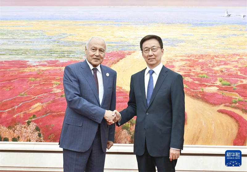O vice-presidente chinês, Han Zheng, reuniu-se com o secretário-geral da Liga dos Estados árabes, Ahmed Aboul-Gheit, em Beijing, na quarta-feira.