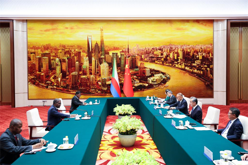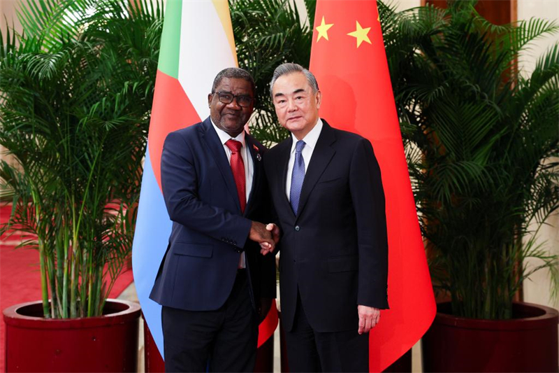 Durante a reuni?o com o ministro das Rela??es Exteriores das Comores, Dhoihir Dhoulkamal, Wang agradeceu às Comores por apoiarem as propostas legítimas da China sobre quest?es relativas a seus interesses fundamentais e preocupa??es importantes. A China está pronta para refor?ar os intercambios com as Comores a todos os níveis, promover a coopera??o de alta qualidade do Cintur?o e Rota, aprofundar a coopera??o no alívio da pobreza, educa??o e forma??o, cuidados médicos e outras áreas, e importar mais produtos de alta qualidade das Comores.