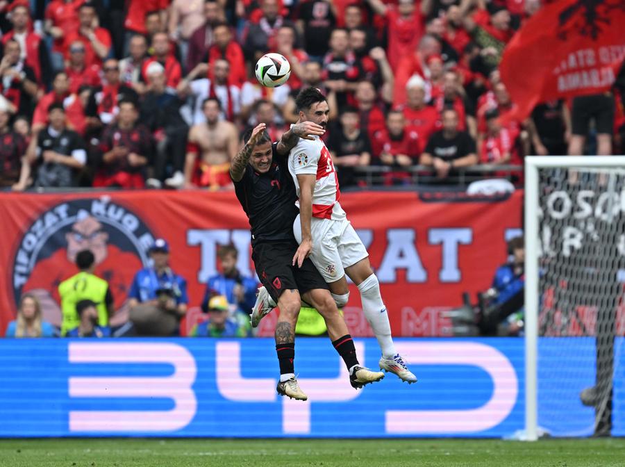 ?Anúncio da montadora chinesa BYD, durante a partida do Grupo B entre a Croácia e a Albania, em Hamburgo, Alemanha, em 19 de junho de 2024.?