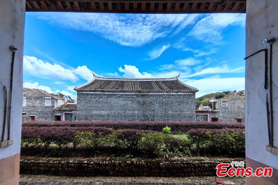 Casas desmoronadas nos lados leste e oeste do Sal?o Ancestral do Cl? Li, na província de Fujian, no leste da China.