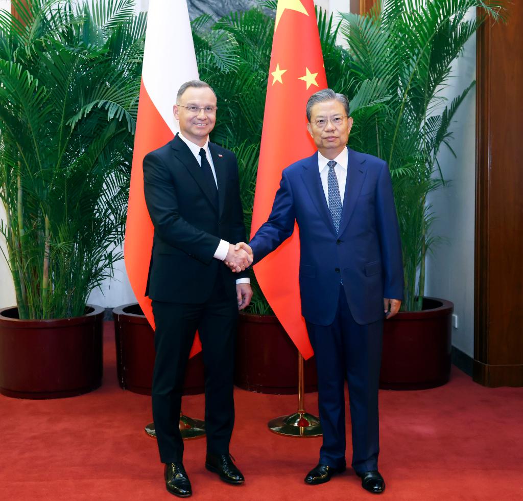 Zhao Leji, presidente do Comitê Permanente da Assembleia Popular Nacional (APN), reuniu-se na segunda-feira com o presidente polonês, Andrzej Duda, em Beijing.