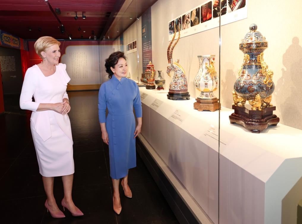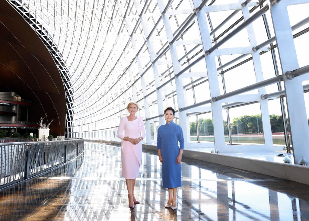 Peng Liyuan, esposa do presidente chinês, Xi Jinping, e Agata Kornhauser-Duda, esposa do presidente polaco, Andrzej Duda, visitaram o Centro Nacional de Artes Cênicas da China (NCPA, na sigla em inglês) em Beijing na segunda-feira.