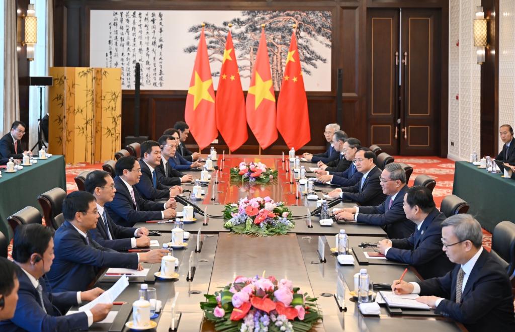 Li transmitiu sauda??es cordiais do secretário-geral do Comitê Central do Partido Comunista da China e do presidente chinês Xi Jinping a Nguyen Phu Trong, secretário-geral do Comitê Central do Partido Comunista do Vietn?, e ao presidente vietnamita To Lam.