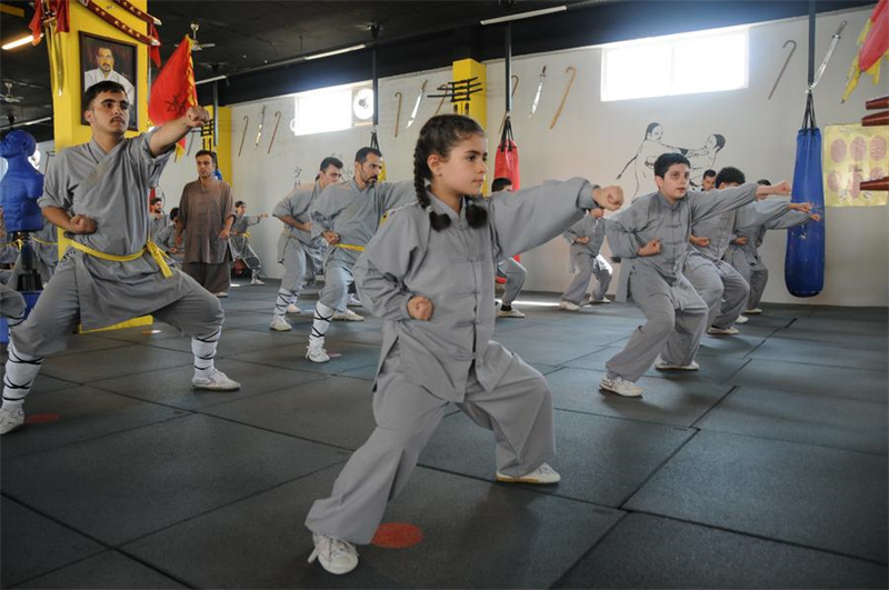 Bagdá, 23 jun (Xinhua) -- Em um clube de Wushu localizado na cidade de Sulaymaniyah, na regi?o semi-aut?noma do Curdist?o iraquiano, mais de 100 entusiastas de artes marciais chinesas locais, vestidos com trajes tradicionais de treinamento, est?o praticando diligentemente rotinas de Wushu, com cada golpe executado com for?a, precis?o e um estrondoso grito curto "hé-há".