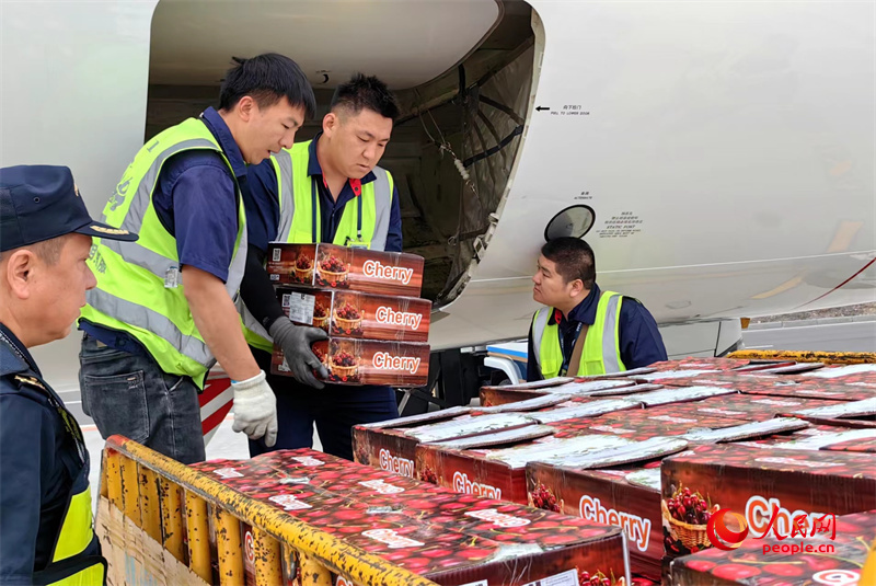 As cerejas importadas do Tadjiquist?o chegaram a Urumqi, transportadas pela China Southern Airlines Logistics Company. Foto: Zhang Cong