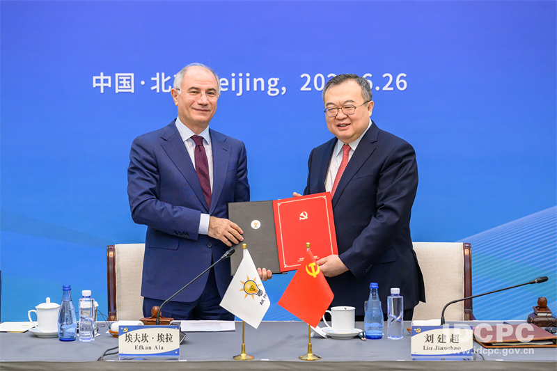 Liu Jianchao, chefe do Departamento das Rela??es Internacionais do Comitê Central do Partido Comunista da China (PCCh), e Efkan Ala, primeiro-vice-presidente do Partido de Justi?a e Desenvolvimento (Partido AK) da Turquia, participaram do diálogo e proferiram discursos de abertura.