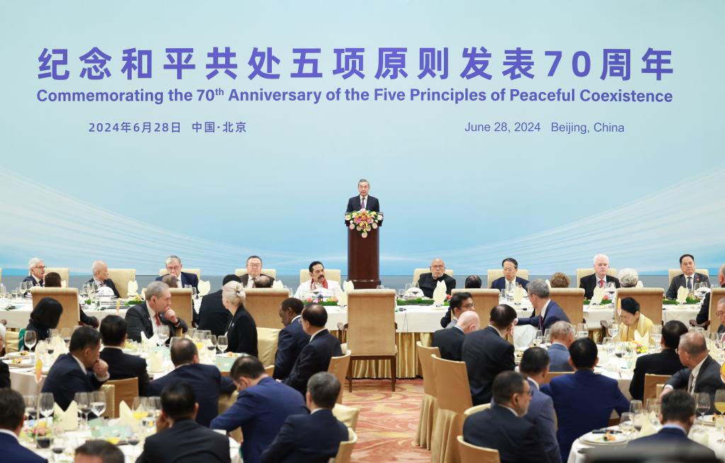 O ministro das Rela??es Exteriores da China, Wang Yi, discursou em um almo?o comemorativo pelo 70o aniversário dos Cinco Princípios de Coexistência Pacífica na última sexta-feira, em Beijing.