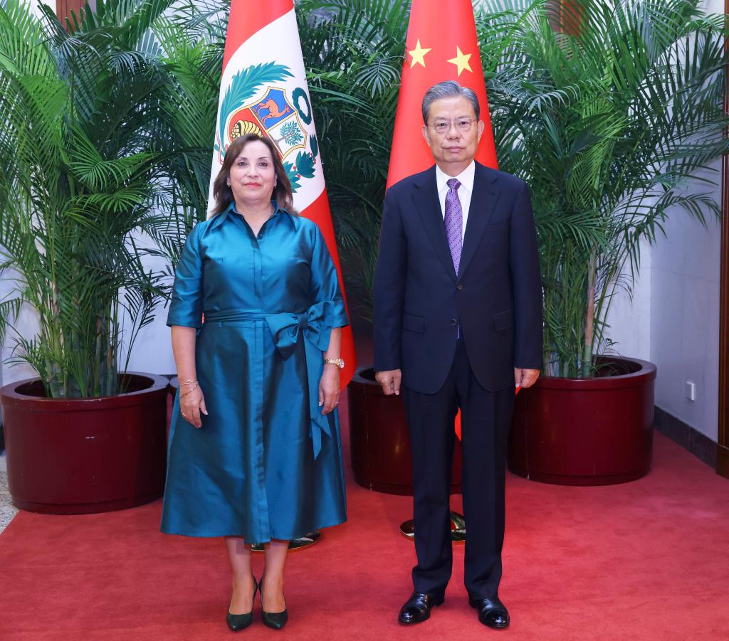 O chefe do Legislativo chinês, Zhao Leji, reuniu-se com a presidente peruana, Dina Ercilia Boluarte Zegarra, em Beijing, na última sexta-feira.