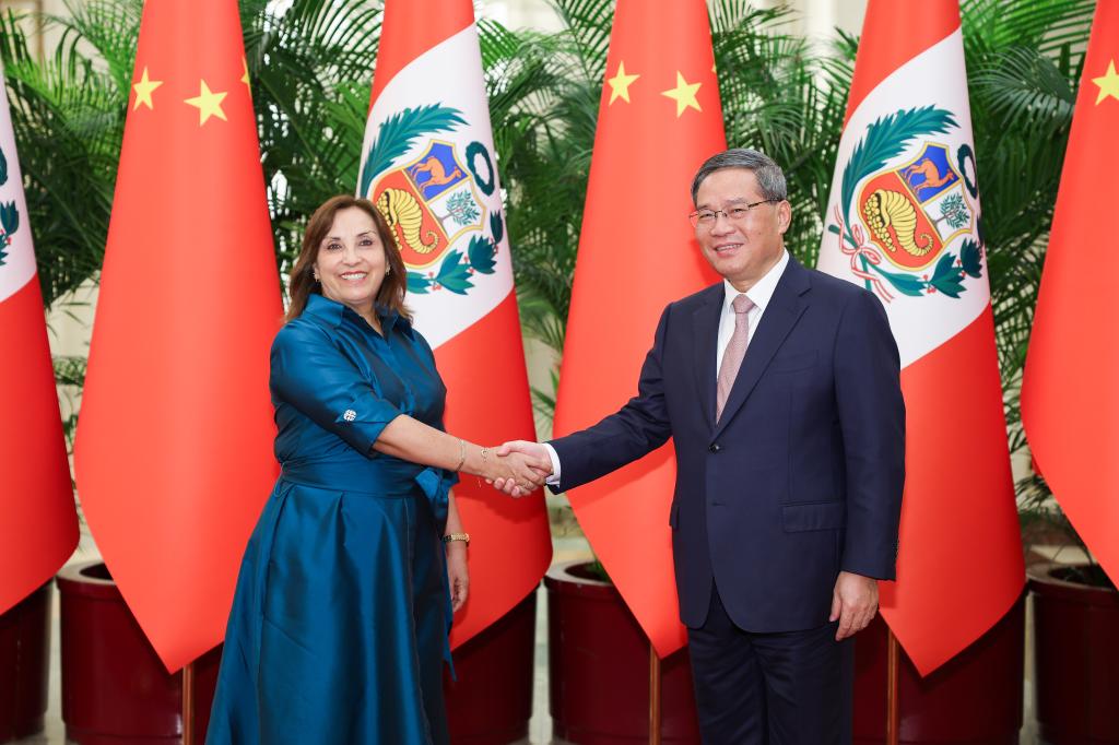 O primeiro-ministro chinês, Li Qiang, reuniu-se com a presidente peruana, Dina Ercilia Boluarte Zegarra, na sexta-feira em Beijing.