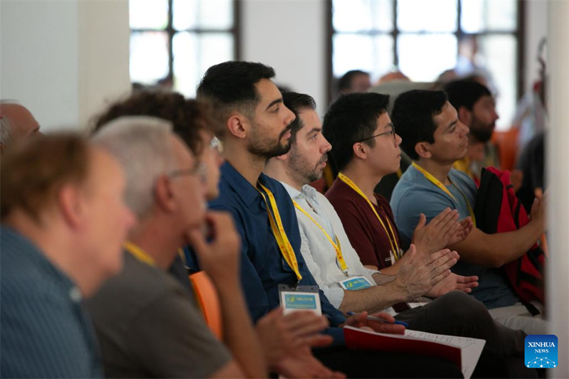 Os participantes ouvem discursos no 17o Encontro Marcel Grossmann em Pescara, Itália, em 9 de julho de 2024. (Li Jing, Xinhua)