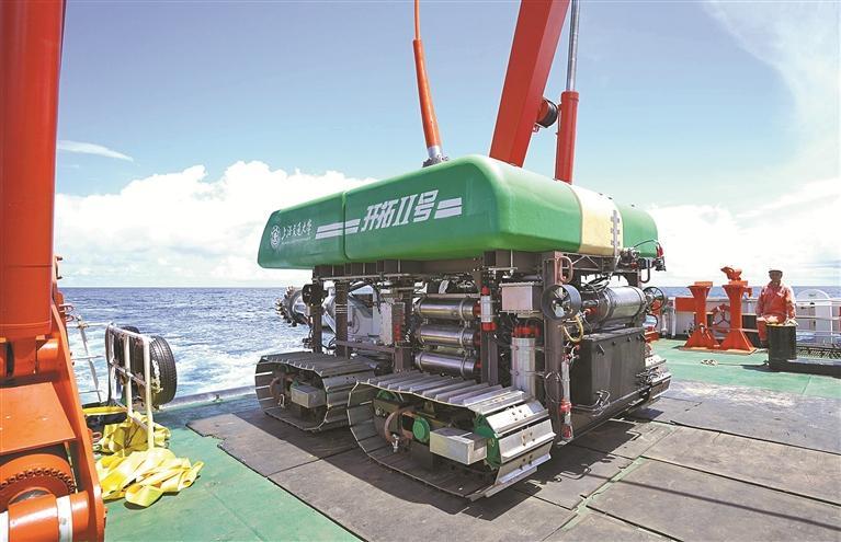 O veículo de minera??o em alto mar Pioneer II, desenvolvido de forma independente pela Universidade Jiao Tong de Shanghai, conseguiu atingir uma profundidade de 4.102,8 metros, marcando a primeira vez que um submersível pesado chinês operou em profundidades superiores a 4.000 metros.