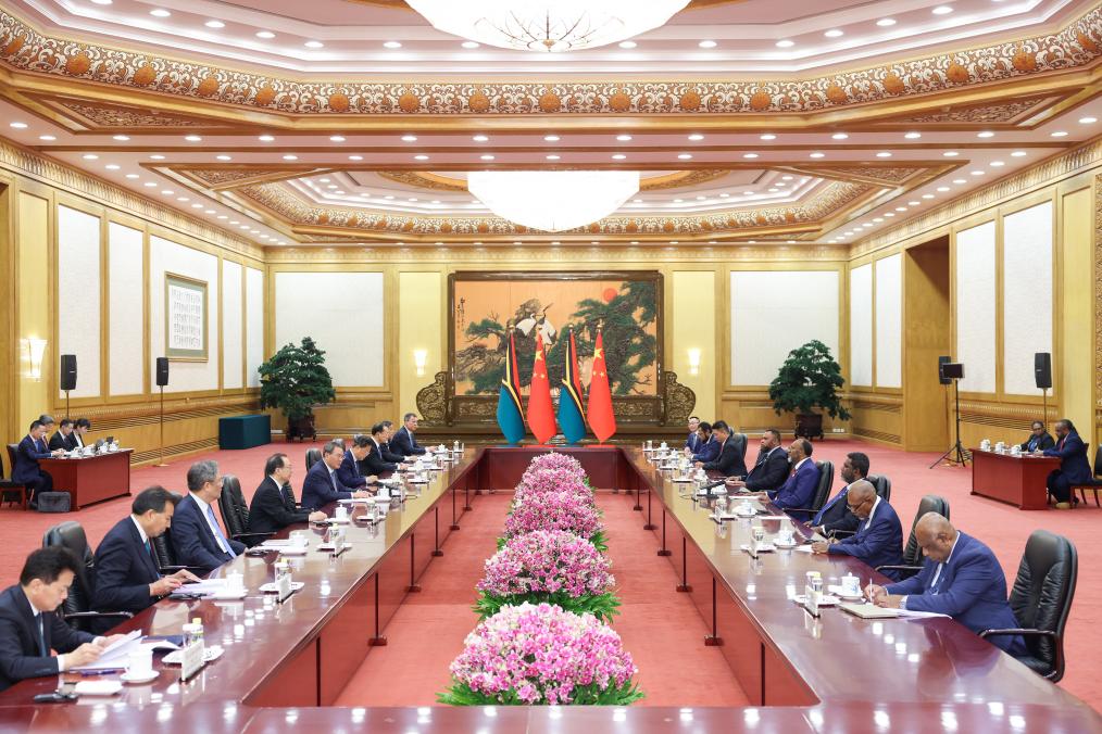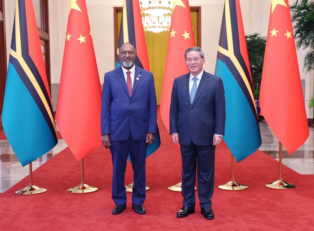 Li disse que a China está disposta a trabalhar com Vanuatu para consolidar ainda mais a base política das rela??es bilaterais, continuar a apoiar um ao outro em quest?es que envolvem os interesses centrais e as principais preocupa??es de cada um, estreitar o vínculo de coopera??o mutuamente benéfica e ganha-ganha, impulsionar a parceria estratégica abrangente China-Vanuatu a um novo nível e trazer mais benefícios tangíveis para os dois povos.