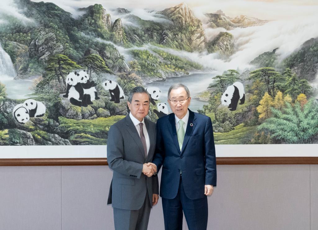 Durante a reuni?o com Ban Ki-moon, que também é presidente do Fórum Boao para a ásia, Wang disse que as propostas de constru??o de uma comunidade com um futuro compartilhado para a humanidade, a Iniciativa Cintur?o e Rota e as três principais iniciativas globais ganharam amplo apoio da comunidade internacional. A China está disposta a trabalhar em conjunto com as Na??es Unidas para injetar um forte impulso na implementa??o da agenda de desenvolvimento sustentável e fazer maiores contribui??es para a paz mundial e o desenvolvimento humano.