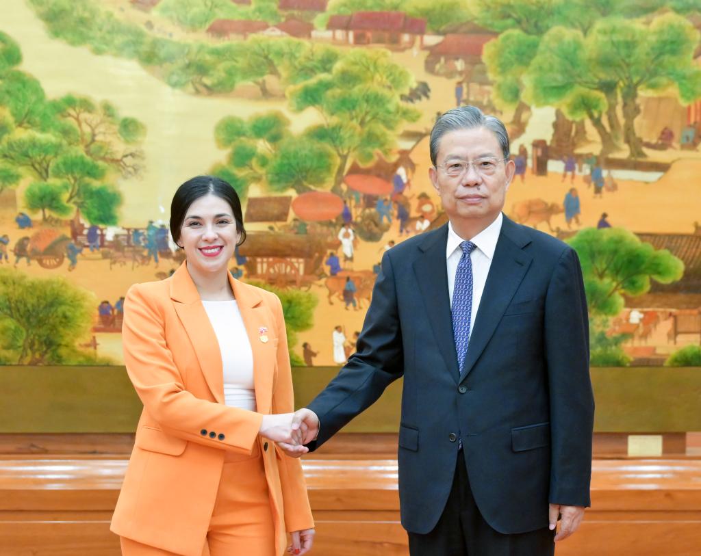 O chefe do Legislativo chinês, Zhao Leji, realizou conversa??es com Karol Cariola Oliva, presidente da Camara dos Deputados do Chile, na sexta-feira em Beijing.