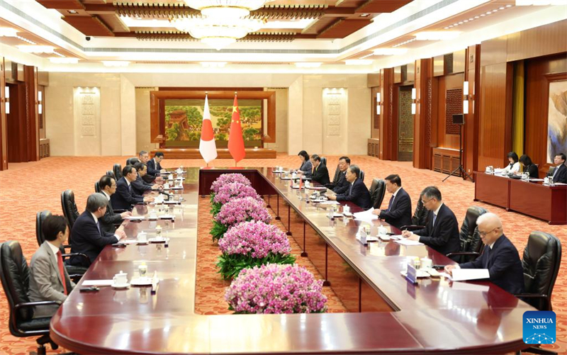 Zhao Leji, o principal legislador da China, reuniu-se com Banri Kaieda, vice-presidente da Camara dos Deputados do Jap?o, em Beijing na segunda-feira.