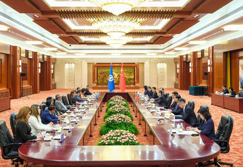 O mais alto conselheiro político da China, Wang Huning, reuniu-se com a presidente do Parlamento Centro-Americano, Silvia García, em Beijing nesta quarta-feira.