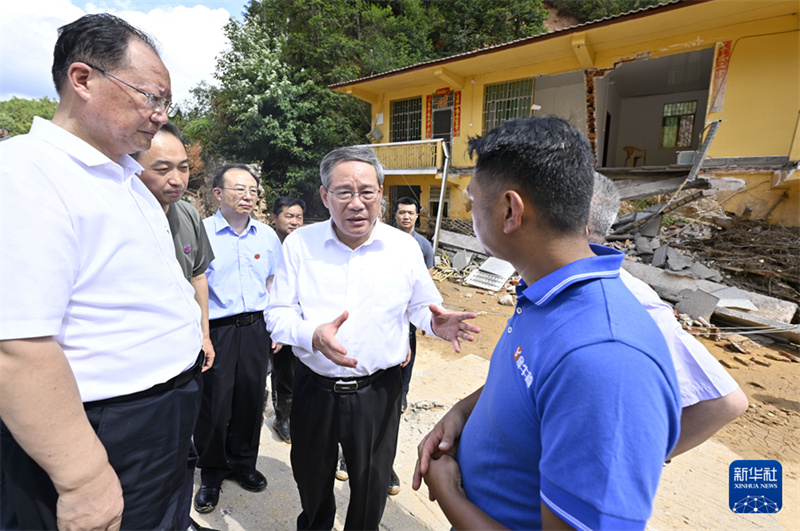 Li visitou duas aldeias atingidas por enchentes na cidade de Zixing, uma das regi?es mais afetadas por chuvas torrenciais induzidas por tuf?es, para se inteirar sobre o progresso nas opera??es de prote??o civil e sobre a extens?o dos danos.