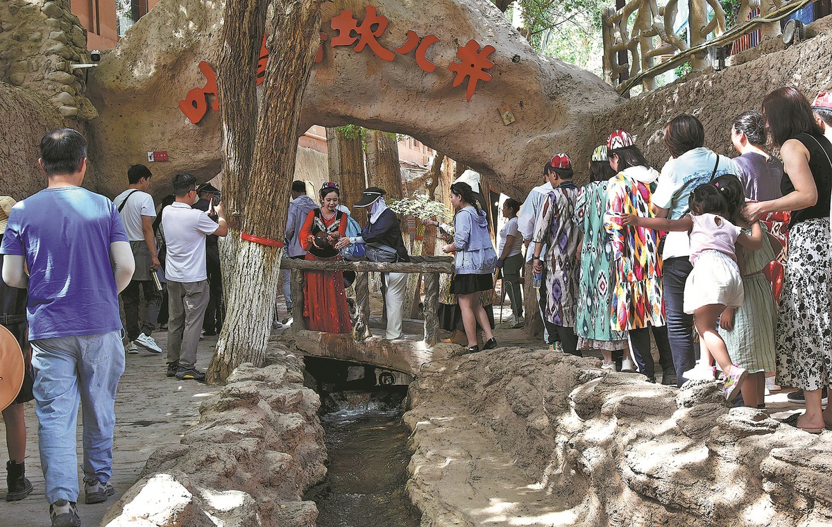 Visitantes fazem fila para entrar em um local cênico com o sistema Karez, em Turpan, Regi?o Aut?noma Uigur de Xinjiang, em junho. LIU JIAN/CHINA DAILY