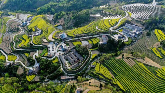 O sistema de campos em terra?os Fengyan em Hanyin, província de Shaanxi