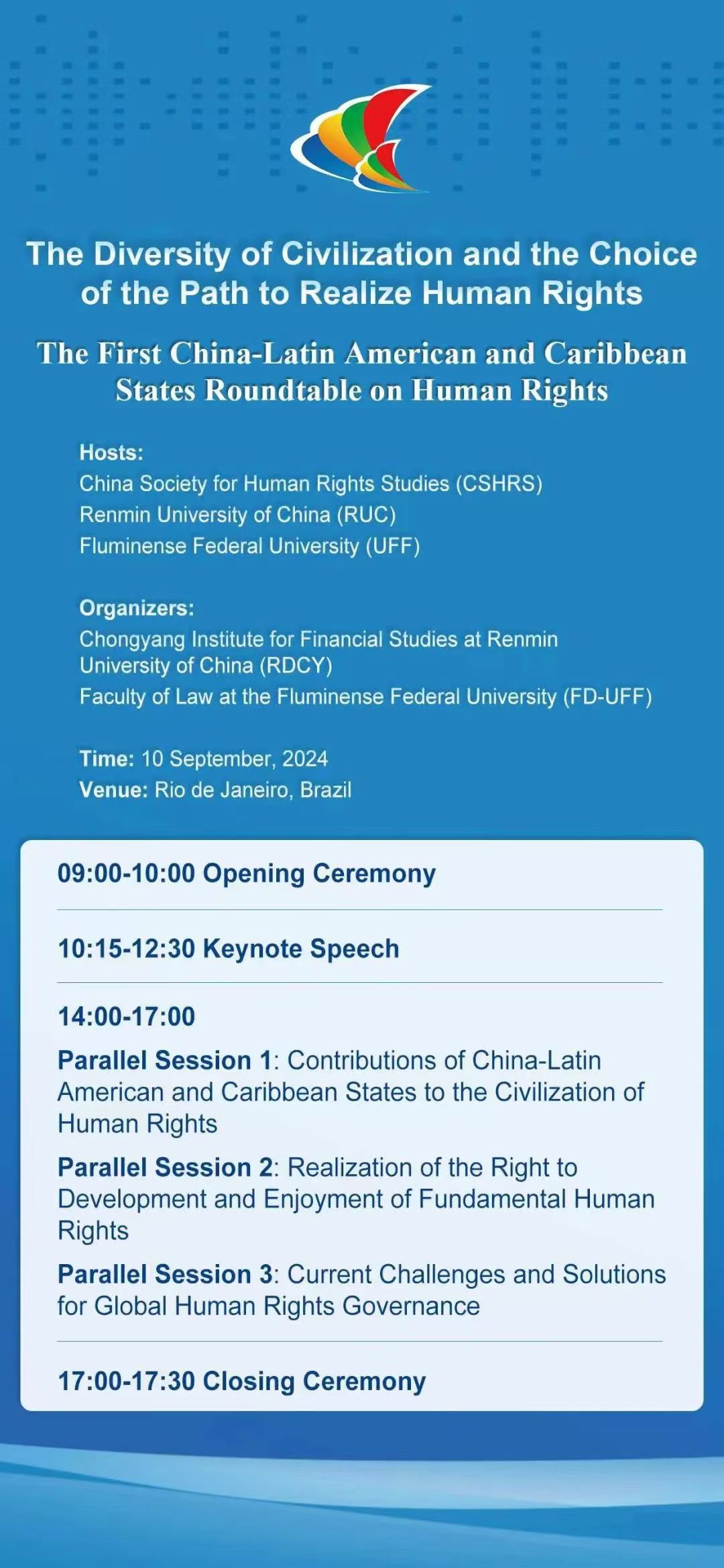 No dia 10 de setembro de 2024, hora local, será realizada no Rio de Janeiro a primeira Reuni?o de Mesa Redonda sobre Direitos Humanos China-América Latina.