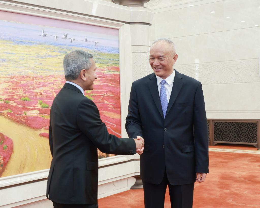 Cai Qi, um funcionário de alto escal?o do Partido Comunista da China (PCCh), reuniu-se com uma delega??o liderada por Vivian Balakrishnan, presidente do Comitê de Rela??es Exteriores do Partido de A??o Popular e ministro das Rela??es Exteriores de Cingapura, em Beijing, na segunda-feira.