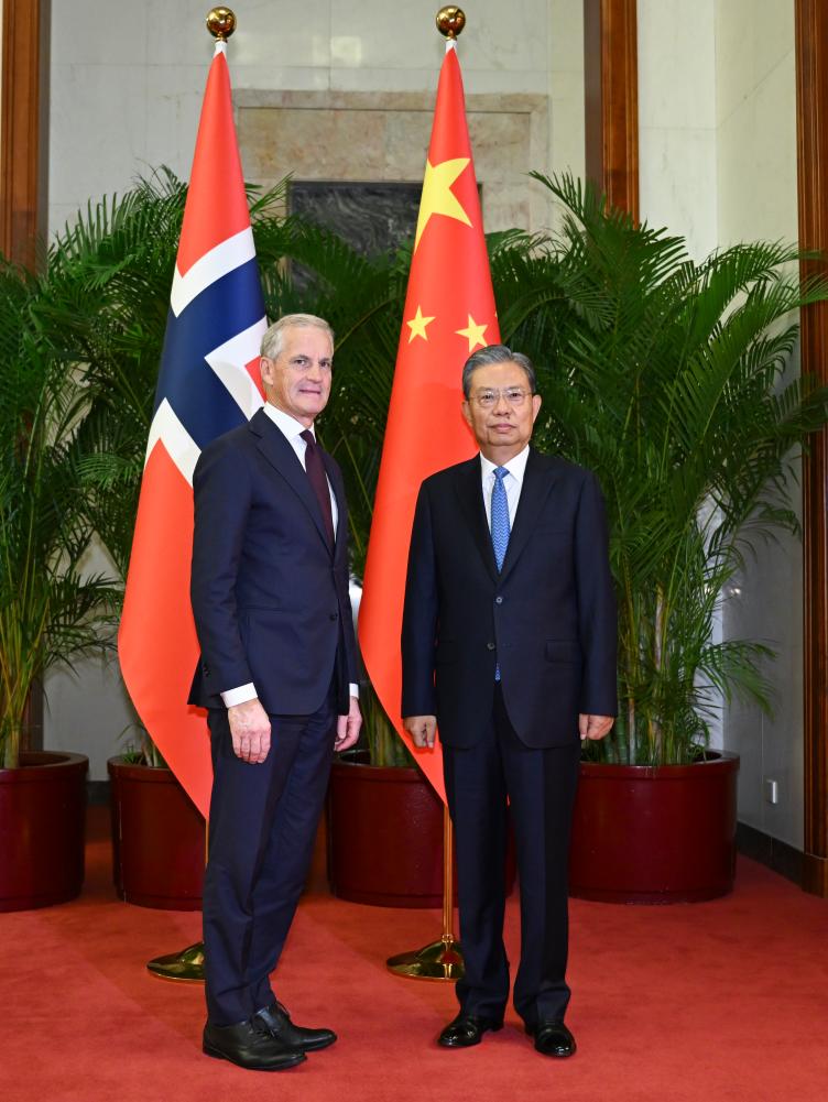 Zhao Leji, o mais alto legislador chinês, reuniu-se nesta segunda-feira com o primeiro-ministro norueguês, Jonas Gahr Store, em Beijing.