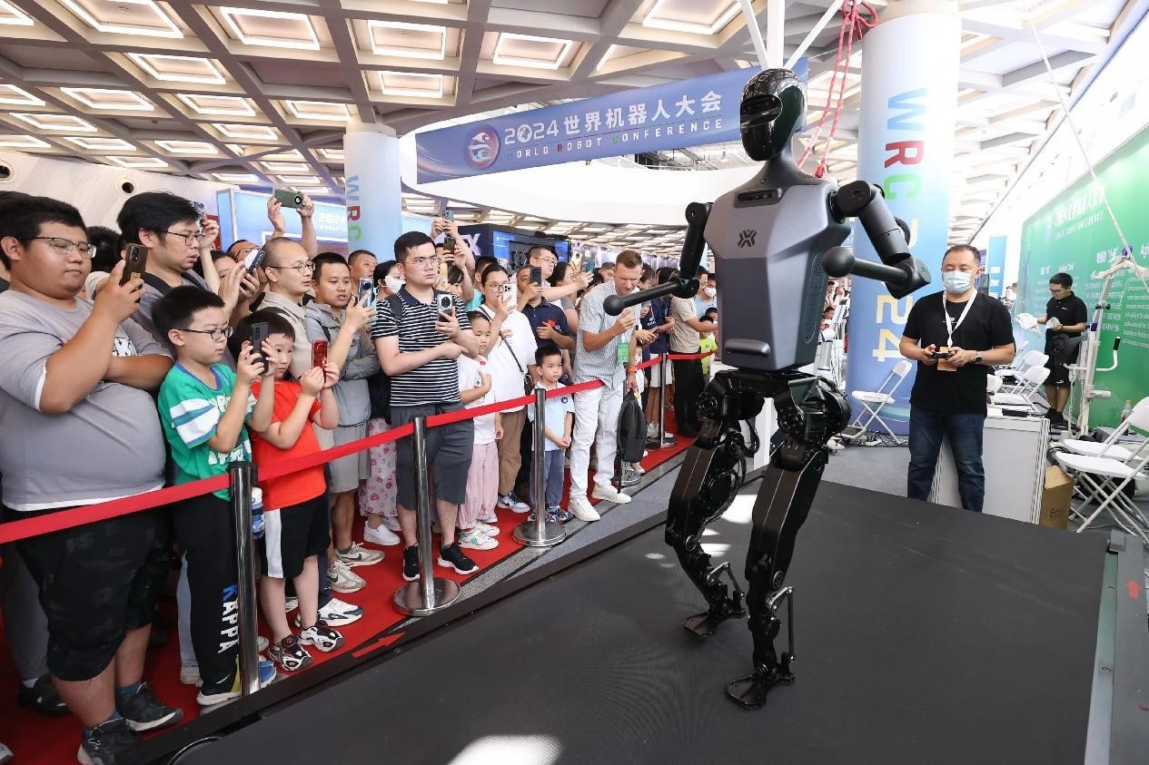 Um rob? humanoide demonstra sua capacidade de correr na Conferência Mundial de Rob?s de 2024, realizada em Beijing, em 22 de agosto de 2024. (Foto: Chen Xiaogen/Diário do Povo Online)