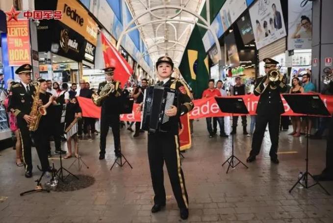Uma equipe do Exército de Liberta??o Popular (ELP) da China se apresentou num mercado de produtos de Brasília, capital do Brasil, no sábado (21) durante a Semana da Cultura Militar Chinesa.