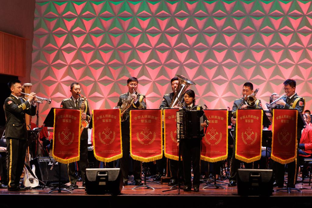 A Banda Militar do Exército de Liberta??o Popular da China tocou a famosa can??o brasileira "Lambada", enquanto a Banda Militar da Infantaria da Marinha do Brasil interpretou a conhecida can??o chinesa "Jasmim". Ambas as bandas militares também executaram juntas "Cantar pela Pátria" e "Aquarela do Brasil". A música maravilhosa fez com que palco e público se fundissem em um só, unindo os povos dos dois países.