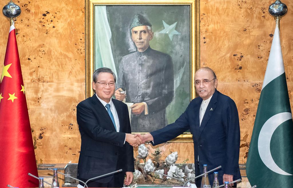 O primeiro-ministro chinês observou que a China sempre viu suas rela??es com o Paquist?o de uma perspectiva estratégica e de longo prazo e sempre colocou o Paquist?o como uma prioridade na diplomacia de vizinhan?a da China, acrescentando que a China está disposta a trabalhar com o Paquist?o para impulsionar a amizade e a coopera??o China-Paquist?o a novos níveis e trazer mais benefícios para os dois povos.