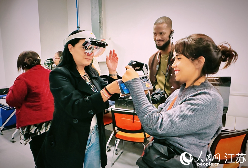 Jornalistas latino-americanos experimentam sistema inteligente AR, na Universidade de Minera??o e Tecnologia da China. Foto: Zhou Mengjiao, Diário do Povo Online