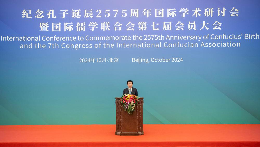 Wang pediu que se leve adiante e promova o confucionismo e todas as culturas tradicionais notáveis, fazendo assim novas contribui??es para o desenvolvimento de uma comunidade humana com um futuro compartilhado.
