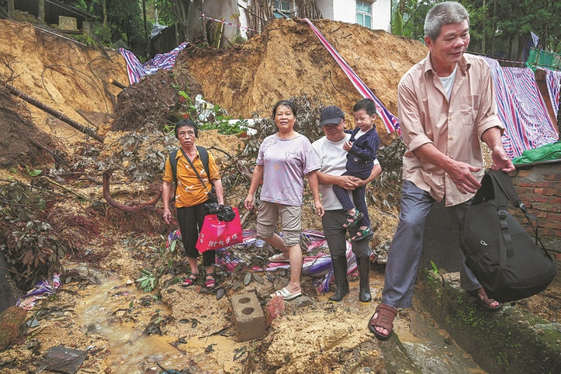 Moradores se mudam para um local de reassentamento na cidade de Shibi, Qionghai, província de Hainan, na segunda-feira. Qionghai foi novamente afetada por chuvas torrenciais no domingo. (Foto: Yuan Chen/China Daily)