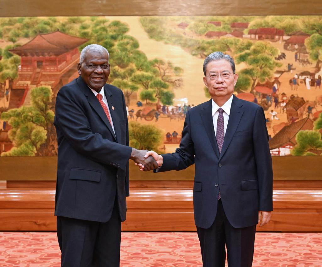 Zhao Leji, o principal legislador da China, e Esteban Lazo Hernández, presidente da Assembleia Nacional do Poder Popular de Cuba, conversaram na quinta-feira em Beijing, prometendo fortalecer o intercambio na área de desenvolvimento do Estado de Direito.