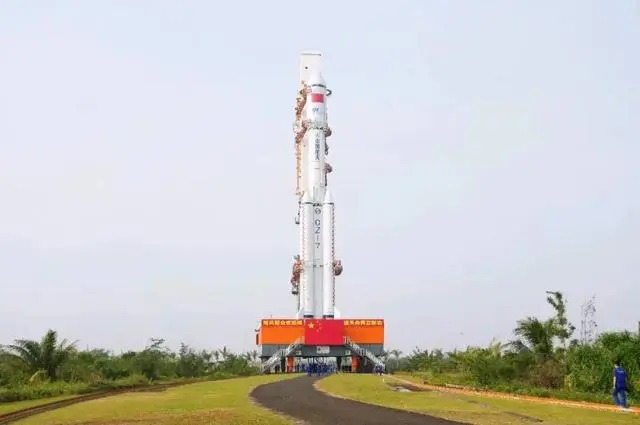 A combina??o da espa?onave de carga Tianzhou-8 e um foguete transportador Longa Marcha-7 Y9 foi transferida verticalmente para a área de lan?amento nesta quarta-feira.