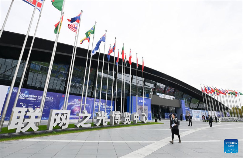Esta foto tirada em 19 de novembro de 2024 mostra a vista externa do local da Light of Internet Expo, em Wuzhen, província de Zhejiang, leste da China. (Huang Zongzhi/Xinhua)