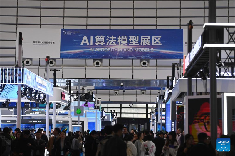 Visitantes da Light of Internet Expo, em Wuzhen, província de Zhejiang, leste da China, em 19 de novembro de 2024. (Huang Zongzhi/Xinhua)