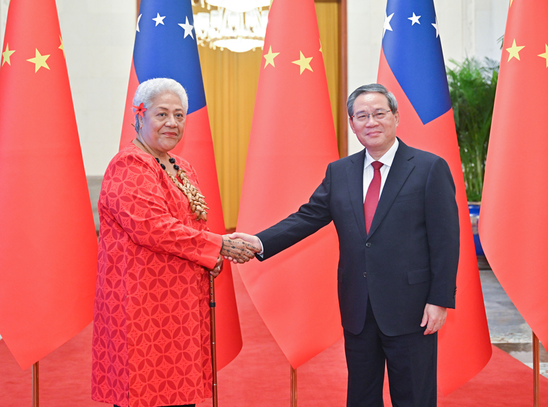 Li destacou que a China está pronta para fortalecer a sinergia das estratégias de desenvolvimento com Samoa, expandir a coopera??o econ?mica e comercial, promover a facilita??o do comércio e dos investimentos, fortalecer a coopera??o em agricultura, pesca, energia limpa, preven??o e mitiga??o de desastres e promover o desenvolvimento e a prosperidade comuns.
