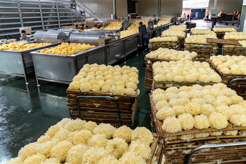 Oficina de produ??o de orelha-de-pau-branca em Gutian. (Foto: Wang Xiabing)