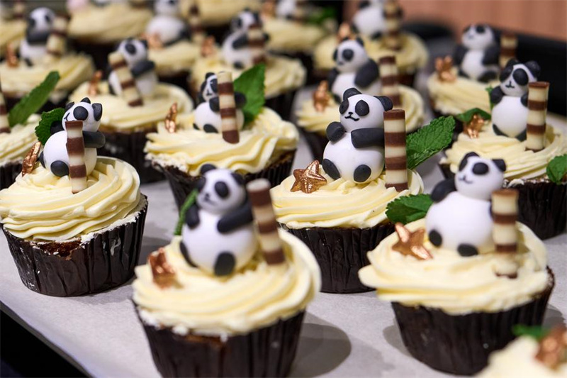 Cupcakes em forma de panda, no zoológico Pairi Daiza, em Brugelette, Bélgica. (Meng Dingbo/Xinhua)