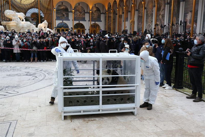 Popula??o se despede dos pandas no zoológico Pairi Daiza, em Brugelette, Bélgica, 10 de dezembro de 2024. (Zhao Dingzhe/Xinhua)