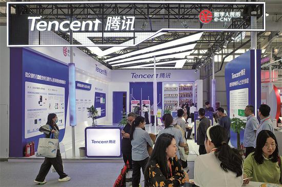 Uma vis?o do estande da Tencent durante uma exposi??o em Beijing. (Foto: China Daily)