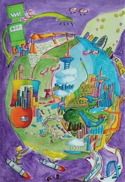 A exposi??o deste ano apresenta 75 obras de arte que foram enviadas para a esta??o espacial chinesa em meados de novembro. As pinturas foram selecionadas entre mais de 20.000 enviadas por adolescentes de toda a China.