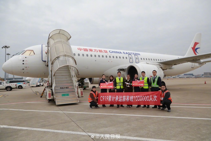 O avi?o de passageiros de grande porte autodesenvolvido pela China, o C919, atingiu na quinta-feira o marco de 1 milh?o de passageiros transportados, informou a China Eastern Airlines.